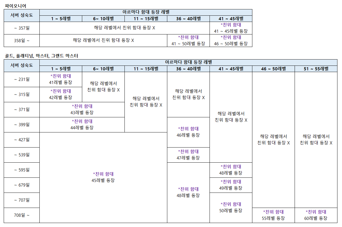 - 레이더 레벨에 따른 처치할 수 있는 아르마다 함대 최대 레벨