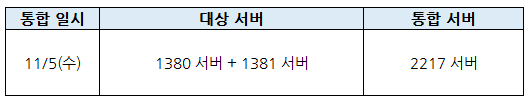 11월 5일, 서버 통합이 진행될 예정입니다.