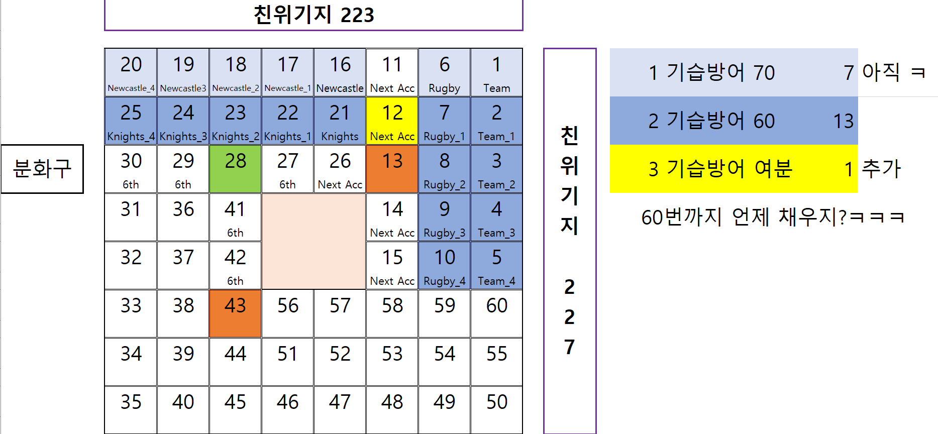 배치가 지저분해져서, 수리 가속 좀 줄이고, 25개 기지 방어로 넘어가야겠군여.ㅋ