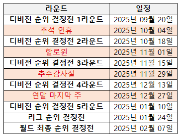 승패에 영향을 최소화하기 위하여 4주 간격의 안정적인 스케줄을 유지하며 신중하게 진행되고 있습니다.