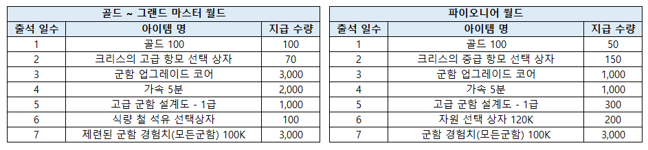 : 이벤트 기간 출석 시 아래의 보상을 획득할 수 있습니다.
