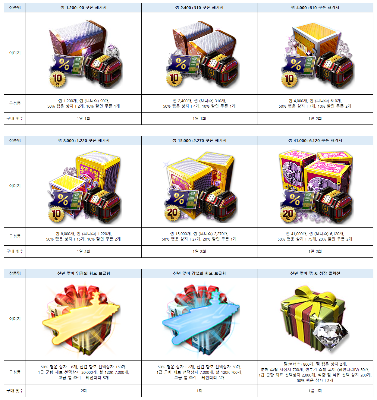 ※ 판매 기간: 1/7(수) 점검 후 ~ 1/14(수) 점검 전