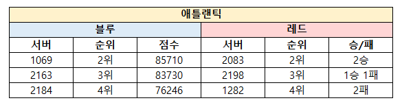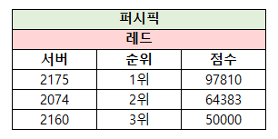 ※승자승 원칙에 따라 아래 서버의 순위가 결정되었습니다.