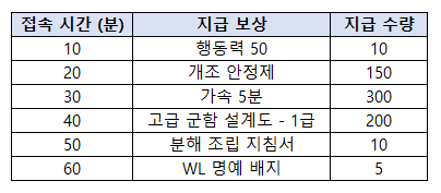 : 이벤트 기간 내 게임 누적 접속 시간에 따라 보상을 획득할 수 있습니다.