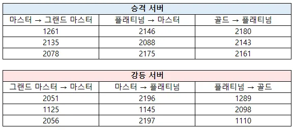 ※ 그랜드 마스터 ~ 플래티넘 월드 22~24위 서버는 하위 월드로 강등됩니다.