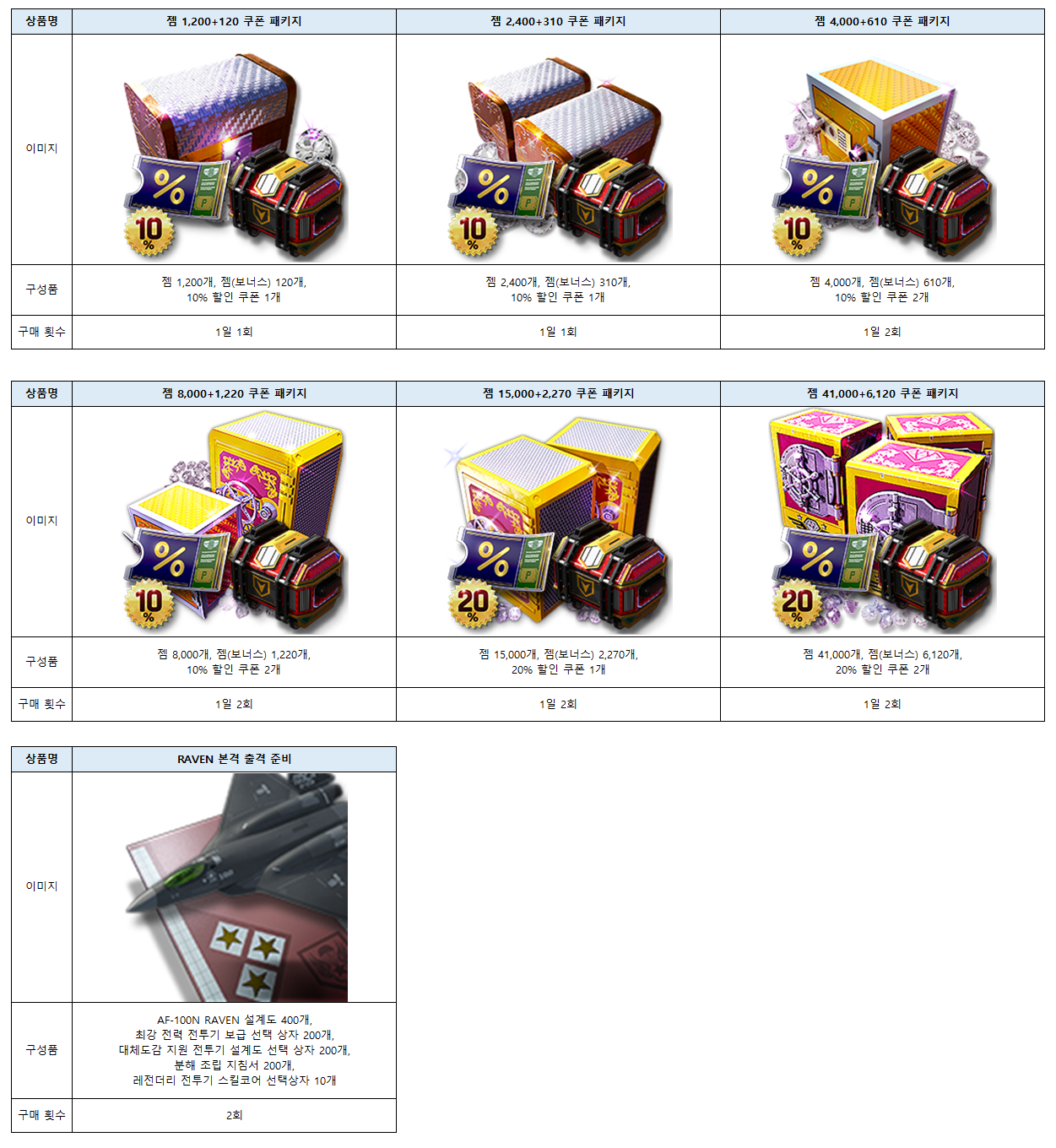 할인 쿠폰과 함께 신규 레전더리 전투기 AF-100N RAVEN 성장을 위한