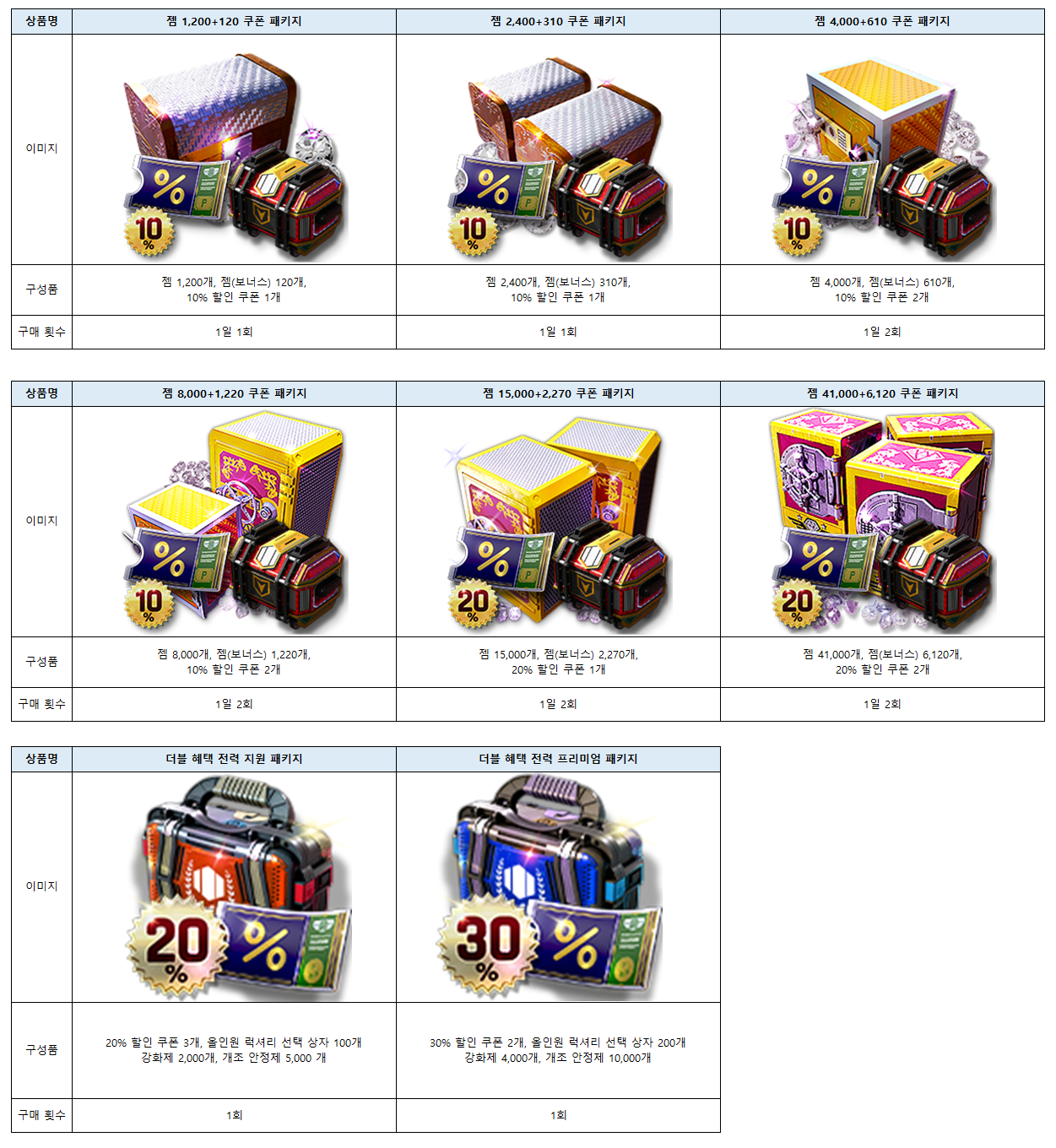 할인 쿠폰과 함께 전력 지원을 위한 상품도 준비되어 있으니,