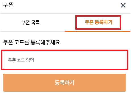② [쿠폰 등록하기] 선택 후 코드 입력