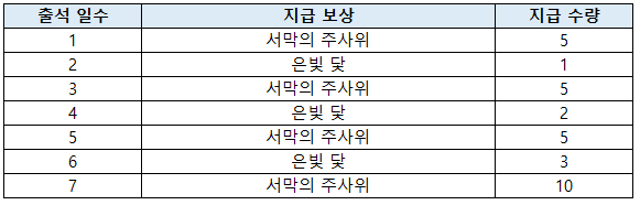 : 이벤트 기간 동안 출석 시 '서막의 주사위’, ‘은빛 닻’ 아이템을 획득할 수 있습니다.