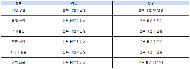 ◆ 상점 오픈 조건 변경 사항