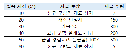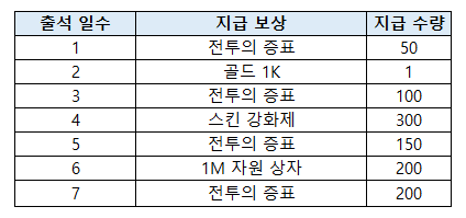 : 이벤트 기간 동안 출석 시 아래의 보상을 획득할 수 있습니다.